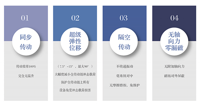 通過(guò)永磁體的磁力將原動(dòng)機(jī)與工作機(jī)聯(lián)接起來(lái)的一種具有保護(hù)功能的新型聯(lián)軸器,利用稀土永磁磁場(chǎng)進(jìn)行磁懸浮隔空傳動(dòng),同步傳遞轉(zhuǎn)矩,可取代傳統(tǒng)聯(lián)軸器的硬(機(jī)械)聯(lián)接,實(shí)現(xiàn)軟(磁)聯(lián)接。