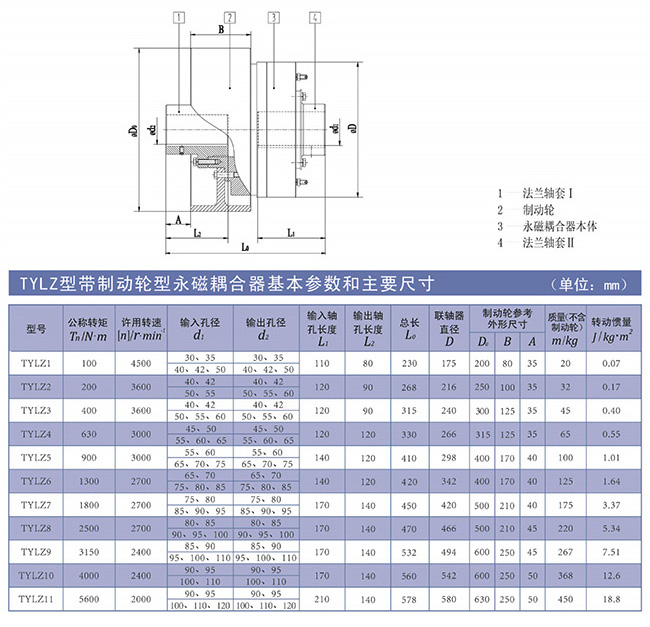 九、TYLZ型永磁耦合聯(lián)軸器結(jié)構(gòu)圖及主要參數(shù)