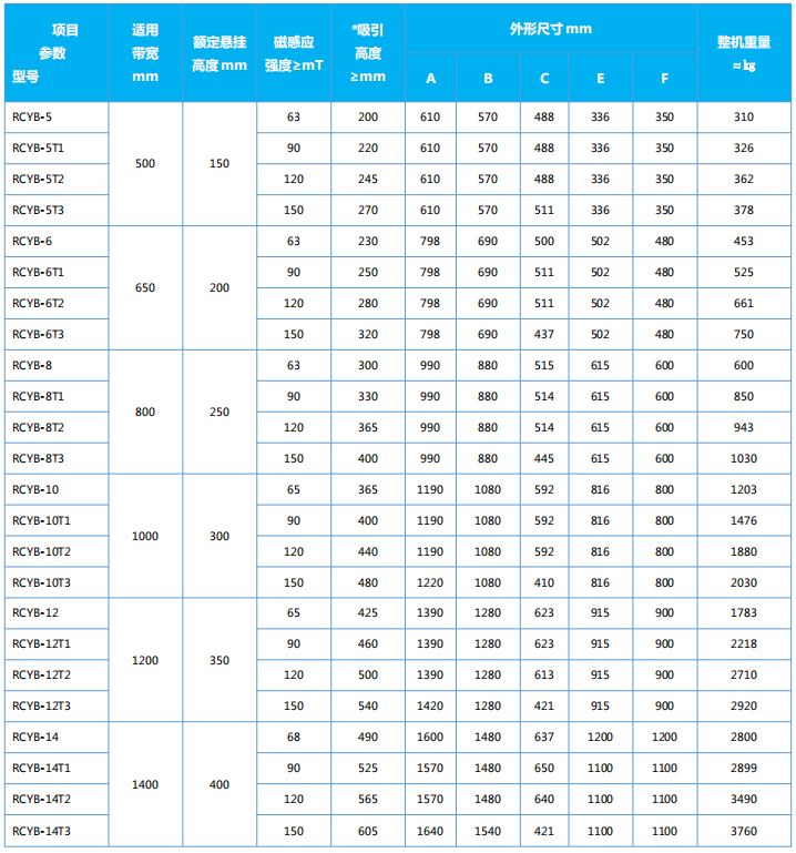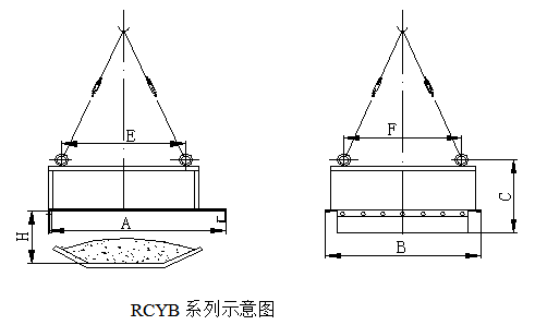 四、RCYB系列懸掛式手動永磁除鐵器主要技術參數(shù)、外形尺寸 執(zhí)行標準:JB/T8711