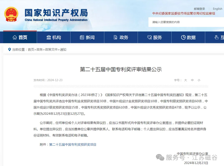 喜迎元旦,江蘇磁谷再創(chuàng)佳績——繞組式無刷耦合傳動裝置榮獲中國專利獎優(yōu)秀獎 | ||